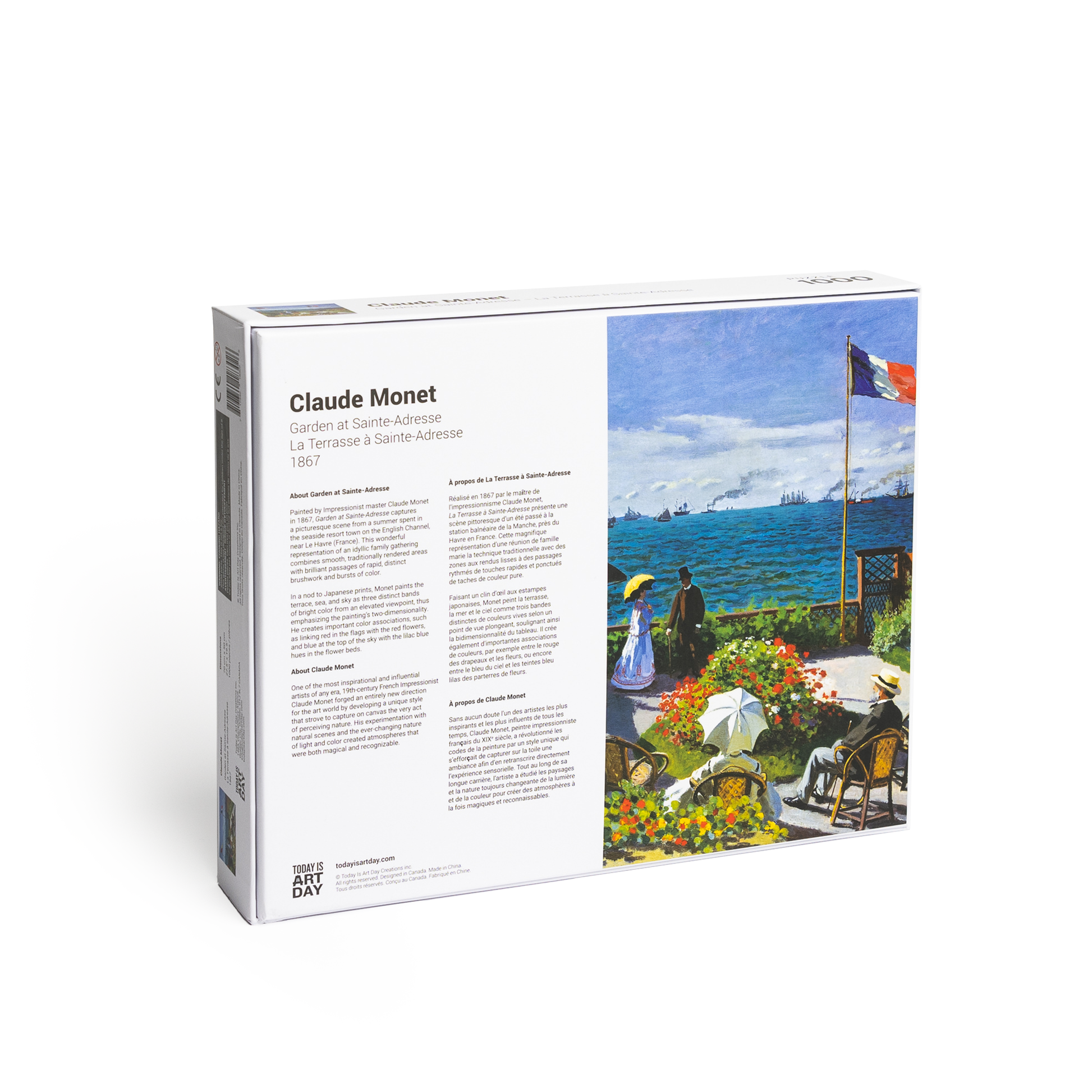 Painted by Impressionist master Claude Monet in 1867,Β Garden at Sainte-AdresseΒ captures a picturesque scene from a summer spent in the seaside resort town on the English Channel, near Le Havre (France). This wonderful representation of an idyllic family gathering combines smooth, traditionally rendered areas with brilliant passages of rapid, distinct brushwork and bursts of color.
