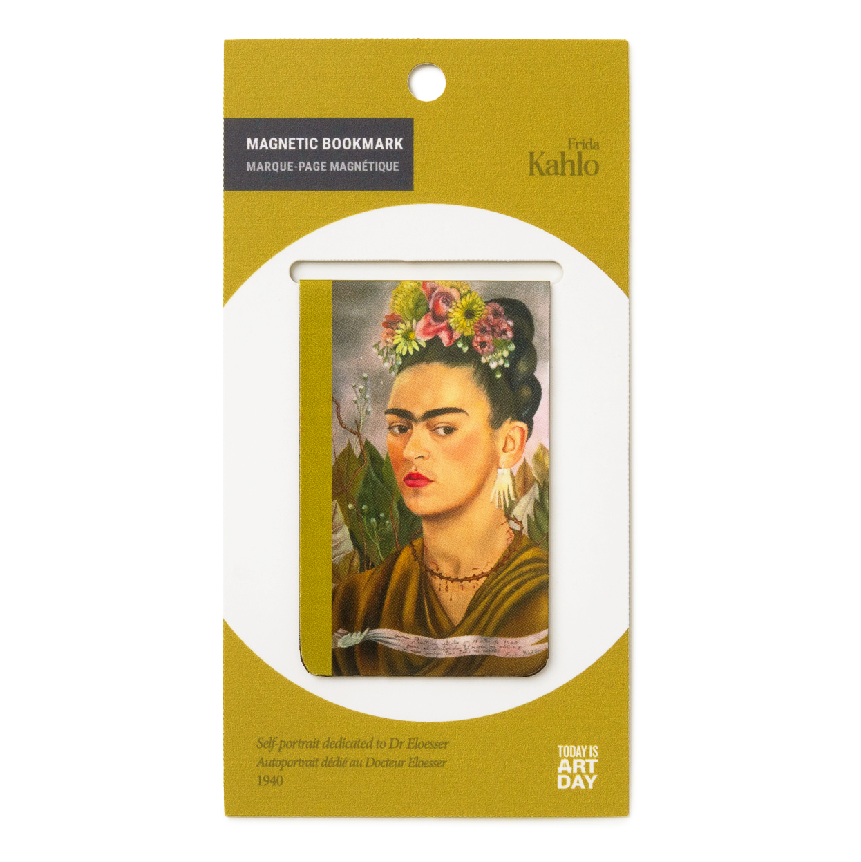 Elevate your reading experience with this magnetic bookmark highlighting the bold spirit of Frida Kahlo. Featuring a vibrant design and secure magnetic closure, this bookmark seamlessly combines functionality with artistic flair. Explore Kahlo's captivating art as you mark your place in your favorite book.