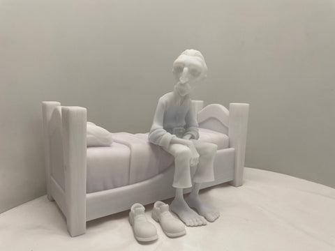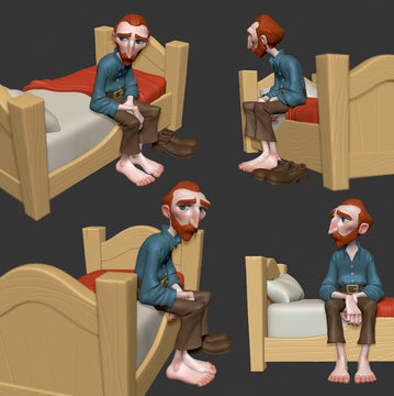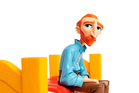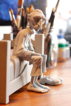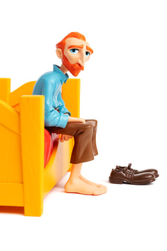 Inspiré par l'artiste post-impressionniste néerlandais et sa célèbre série La Chambre à Arles, cette statuette de collection en vinyle représente l'artiste, regardant par la fenêtre, assis sur son lit après une longue journée de travail, avec ses chaussures aux côtés du lit.