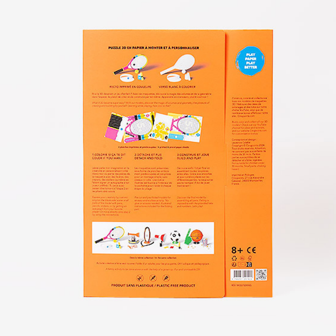 What if 3D became child's play? With these models, your child will discover, away from screens, the magic of volumes and geometry in space while having fun. With sport as a playground, we have designed this 3D paper puzzle to build yourself as a creative, fun and educational activity.