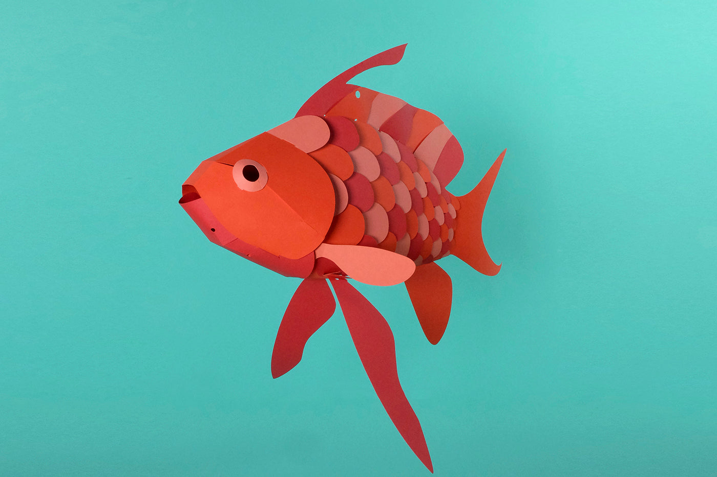 The slender body of the Swallowtail sea perch and its three-coloured scales give it a sense of movement that makes it especially eye-catching. Thanks to its glueless assembly, the body of the fish is slightly flexible and articulated.